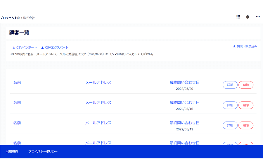 お問い合わせは、顧客管理機能で一元管理ができます。